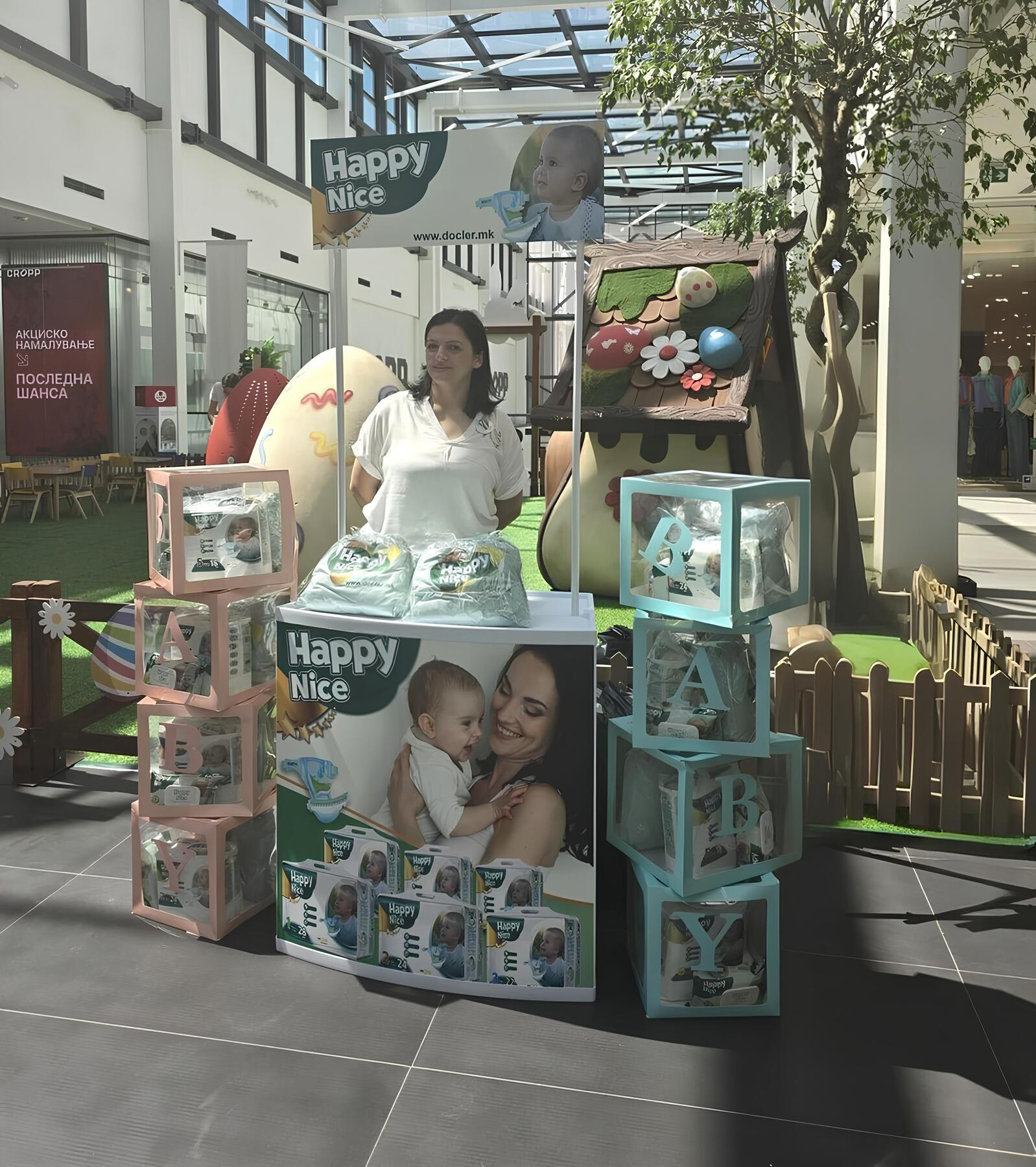 On 18.04.2025, DOCLER organized a successful promotional event for the Happy Nice brand at East Gate Mall in Skopje. The stand attracted many visitors, especially parents with young children, who had the opportunity to learn more about our high-quality diapers and receive free gifts for their little ones.
