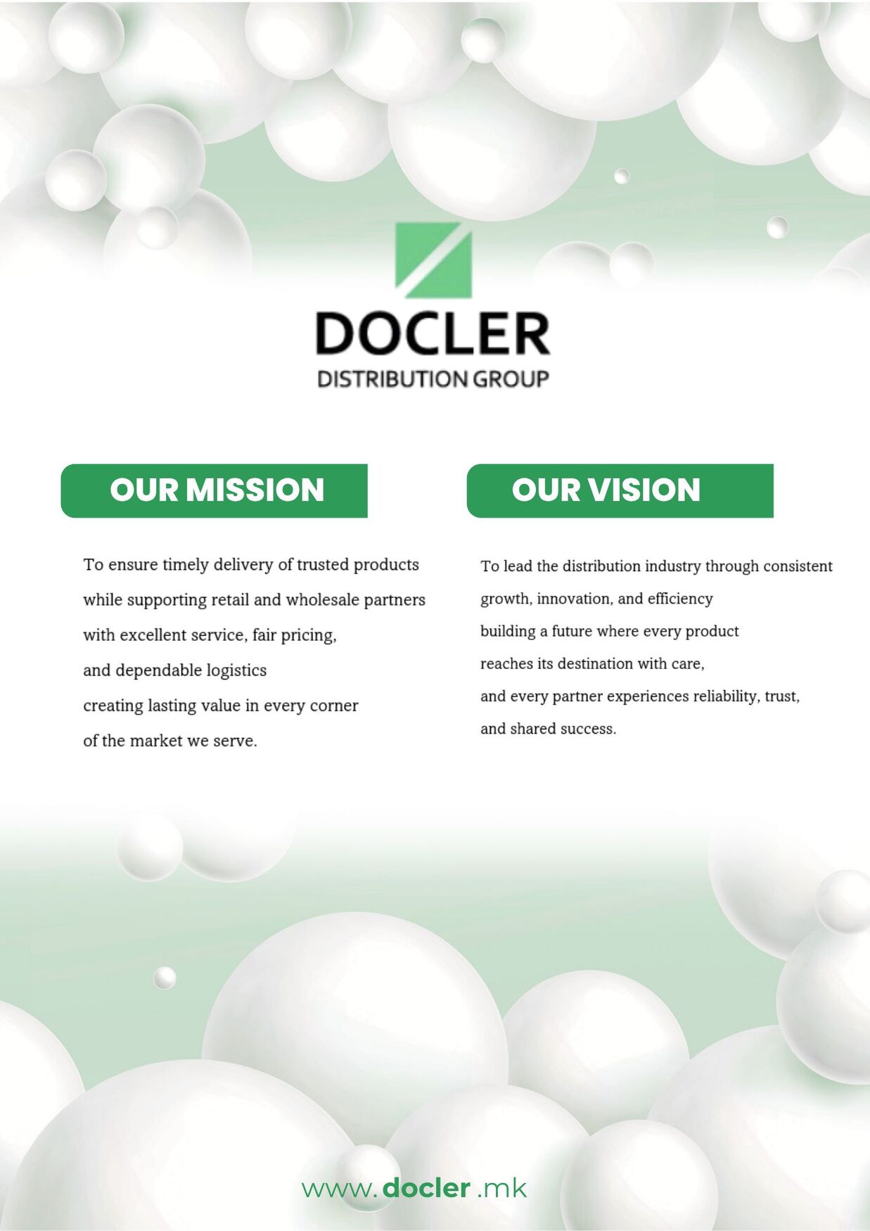 At DOCLER Distribution Group, we are committed to excellence in logistics and distribution. Our mission focuses on delivering trusted products on time while supporting our partners with outstanding service and fair pricing. Our vision is to lead the distribution industry with innovation, efficiency, and care — ensuring lasting value and mutual success for all our partners. Discover how we’re shaping the future of distribution.